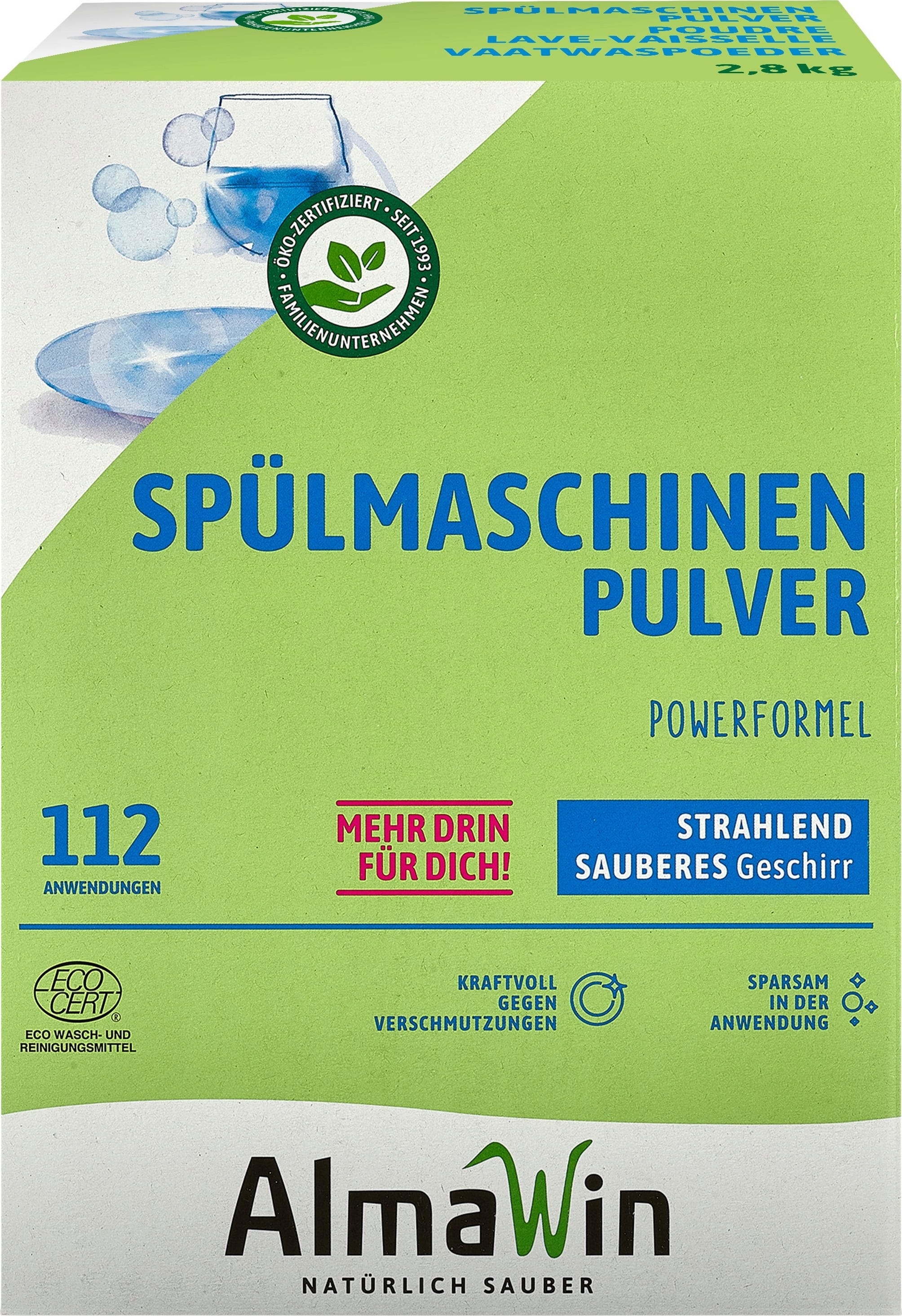 Proszek do mycia naczyń w zmywarce firmy Almawin to bardzo wydajny ekologiczny koncentrat. Należy go dozować w zależności od stopnia zabrudzenia.