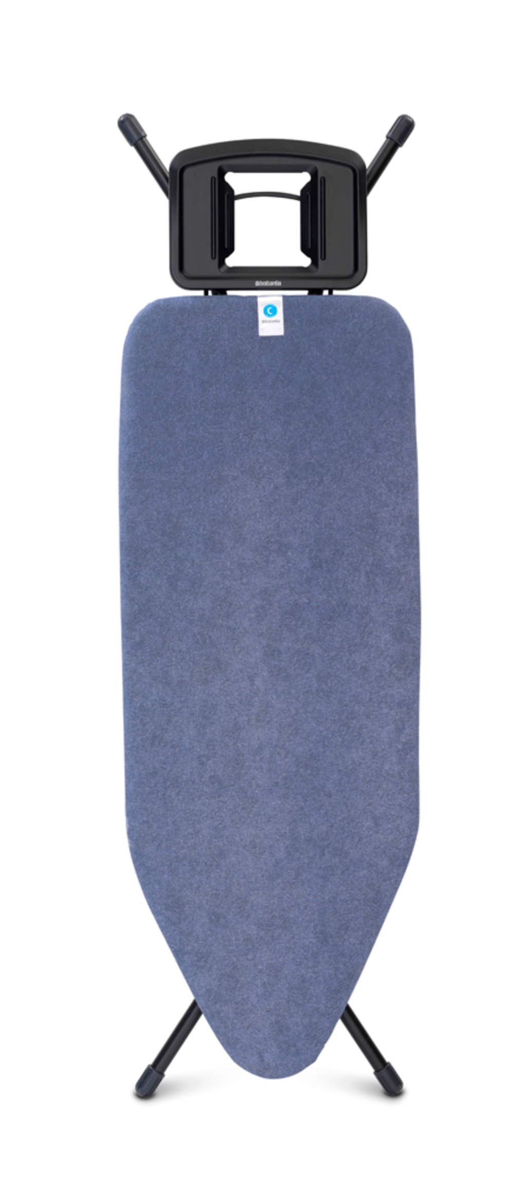 Bardzo szeroka deska do prasowania z pochyłą podstawką na żelazko parowe. Regulowana wysokość, solidna, lekka i łatwa do złożenia. Wyprodukowana w sposób przyjazny dla środowiska, z certyfikatem Cradle to Cradle. Nakładki ochronne na nóżkach sprawiają, że deska do prasowania wykonana z solidnej stalowej ramy jest antypoślizgowa.
