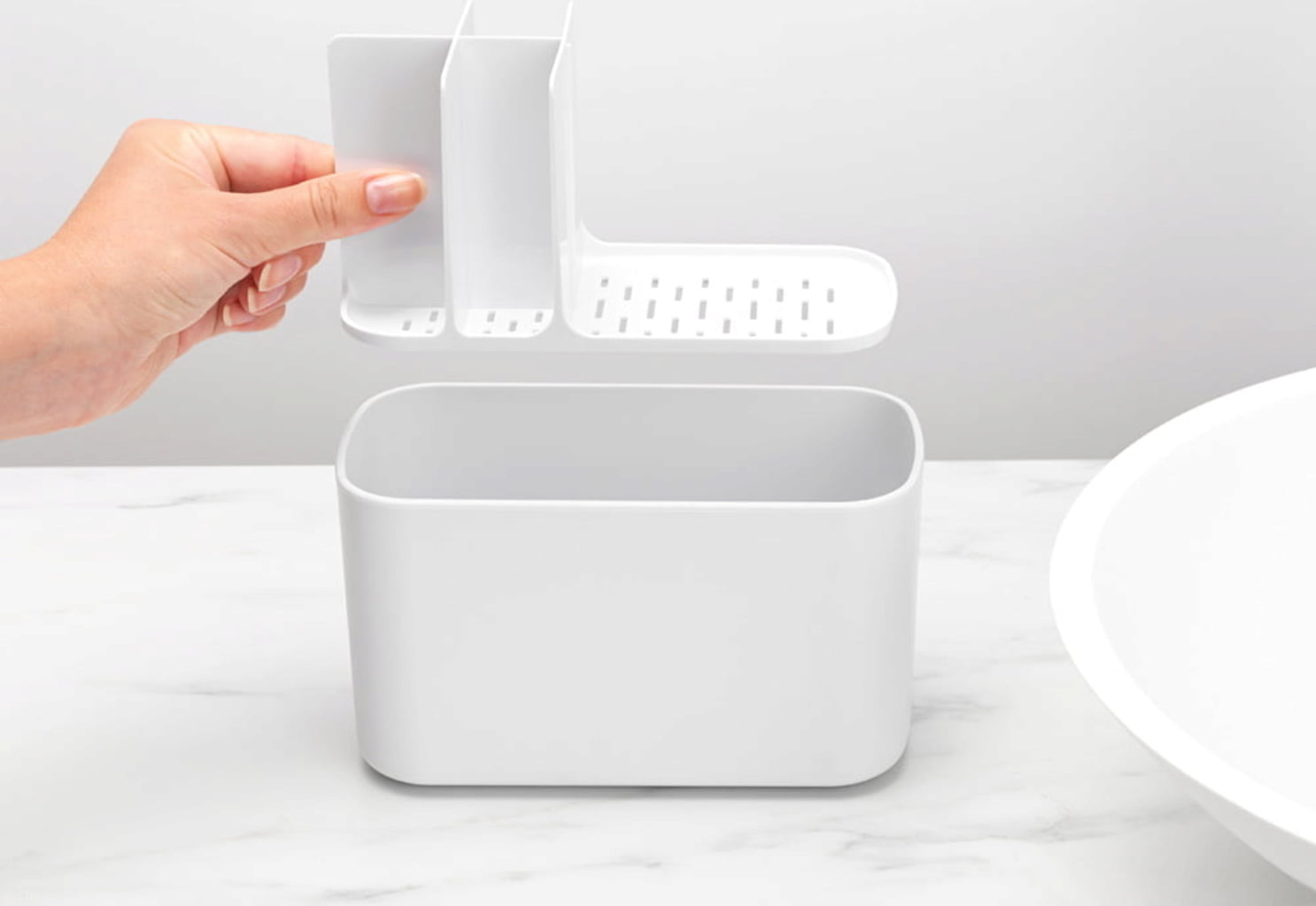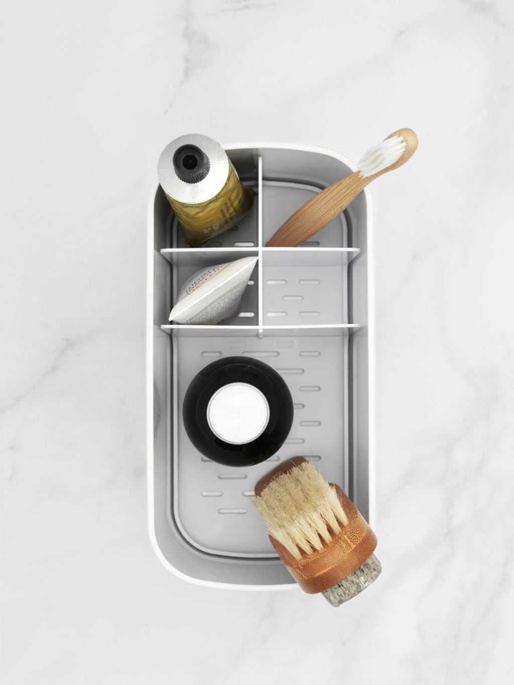 Układanie włosów, mycie zębów, obcinanie paznokci i wszystkie rytuały pielęgnacyjne, które są częścią Twojej codziennej rutyny, z łatwością uporządkujesz je wszystkie w tym praktycznym pojemniku do łazienki.