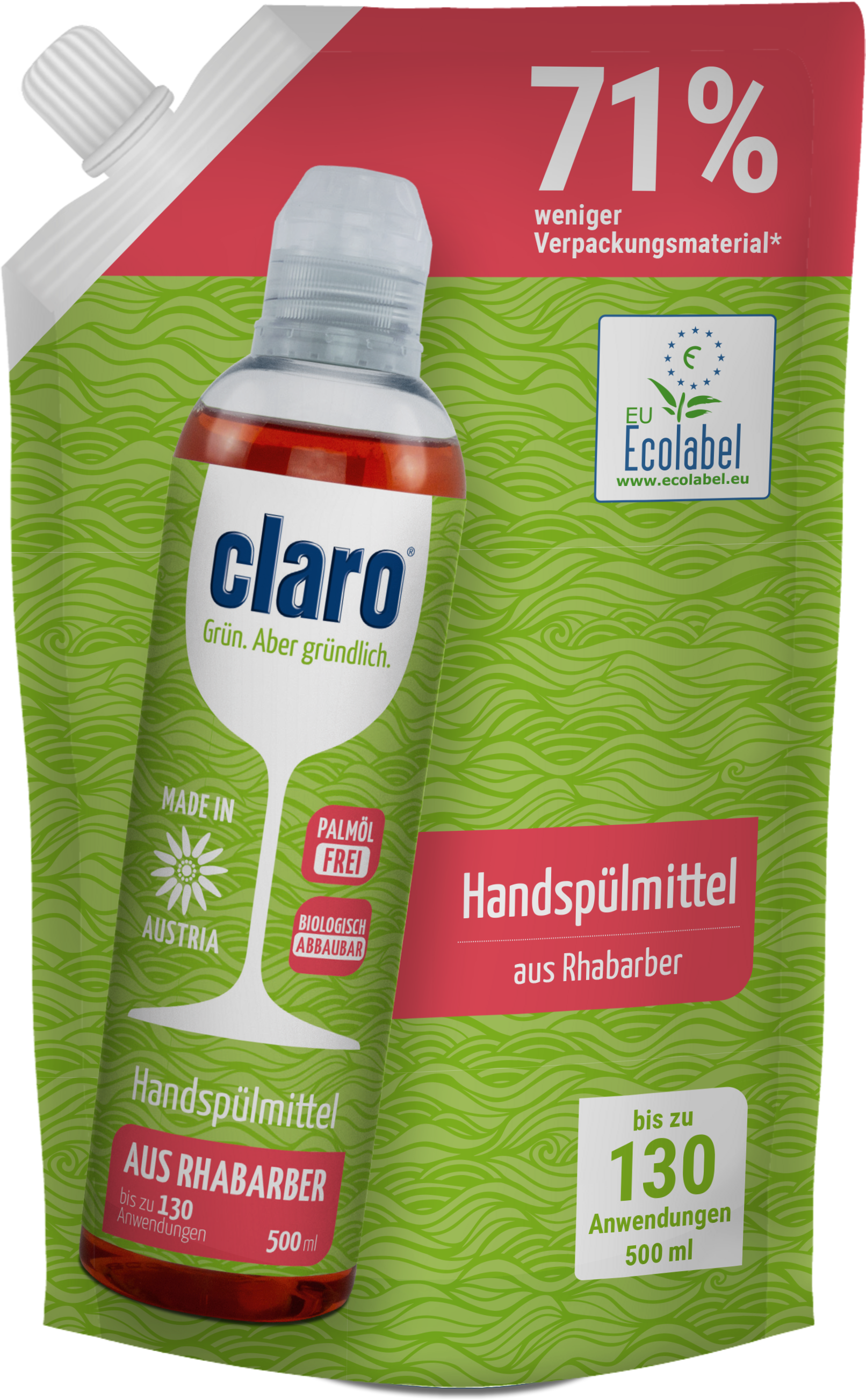 Ten detergent do mycia naczyń firmy claro wydziela przyjemny zapach rabarbaru, a dzięki wysokiej wydajności bez trudu usuwa nawet silne zabrudzenia. Składniki są wegańskie i biodegradowalne. Ponieważ produkt nie zawiera alergizujących konserwantów, jest łagodny nie tylko dla środowiska, ale także dla Twojej skóry.