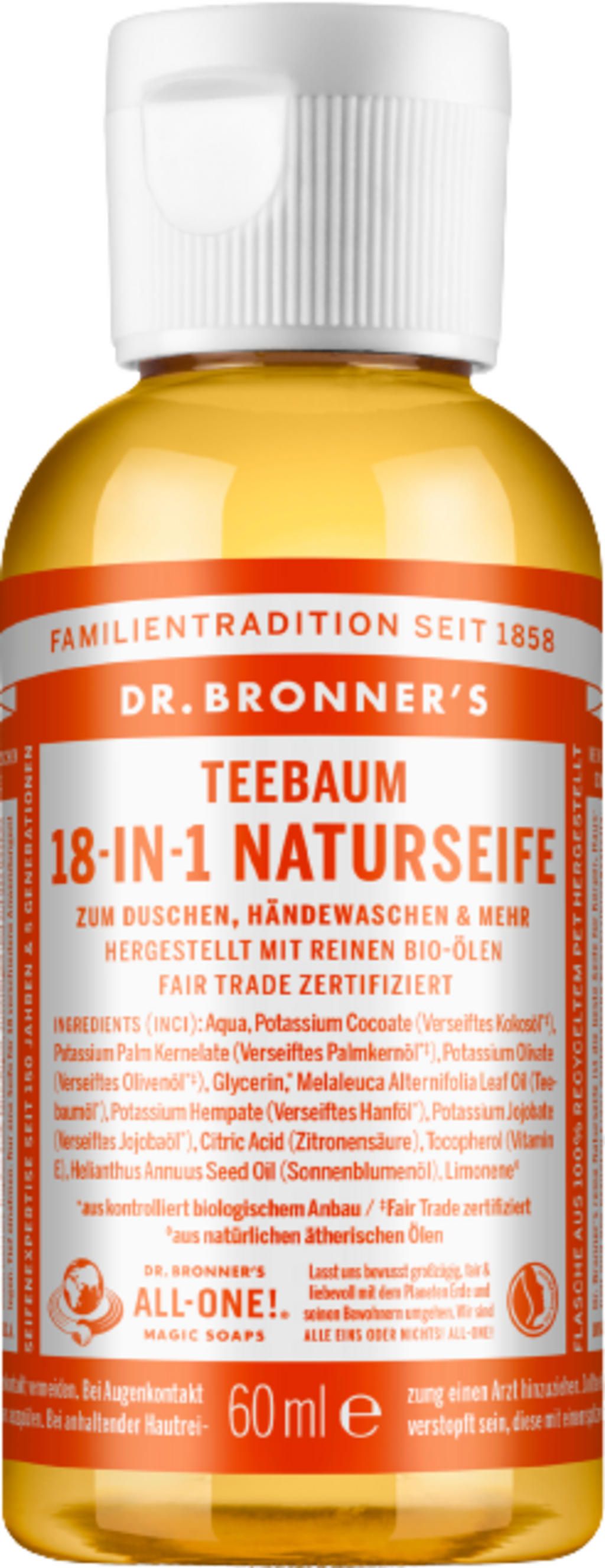 Dr. Bronner's 18in1 Naturalne mydło w płynie z drzewem herbacianym, 60 ml
