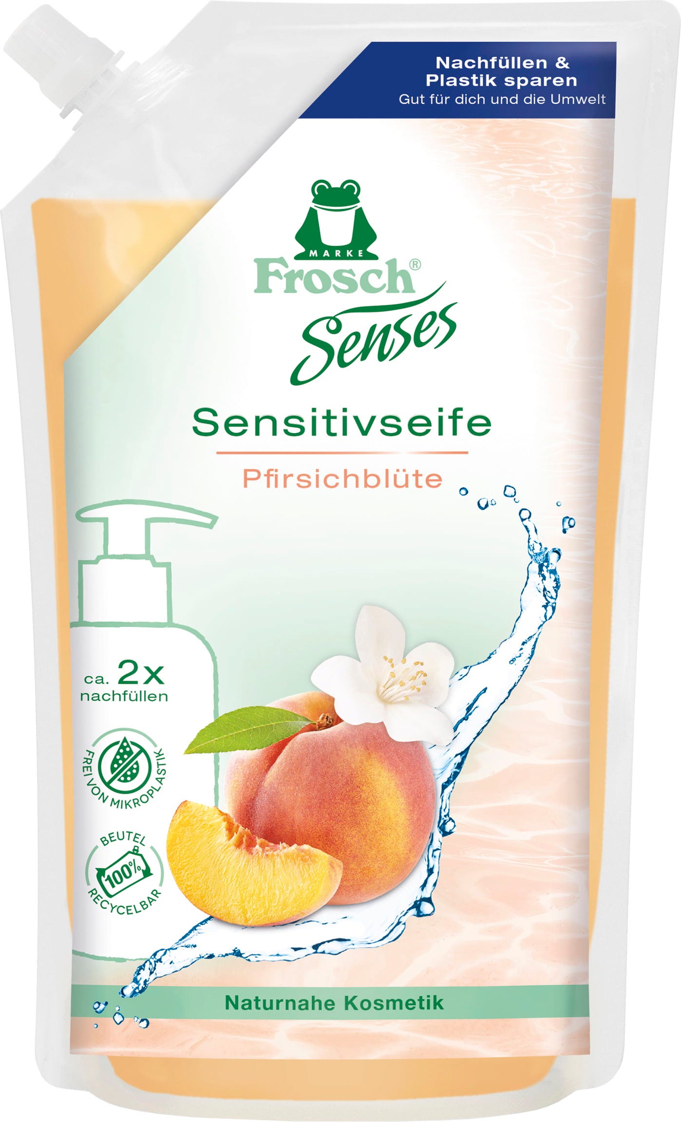 Frosch Mydło pielęgnacyjne, opakowanie uzupełniające, Pfirsichblüte (500 ml)