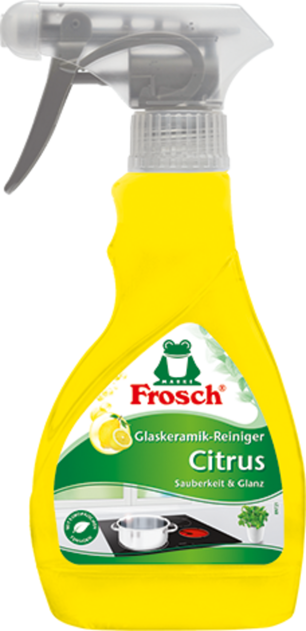 Środek do czyszczenia ceramiki szklanej firmy Frosch zawiera rozpuszczający tłuszcz olejek cytrusowy i idealnie nadaje się do usuwania tłuszczu i brudu z płyt indukcyjnych i płyt szklano-ceramicznych. Zawarte w nim ekstrakty z cytryny zapewniają promienną czystość i świeży cytrynowy zapach!