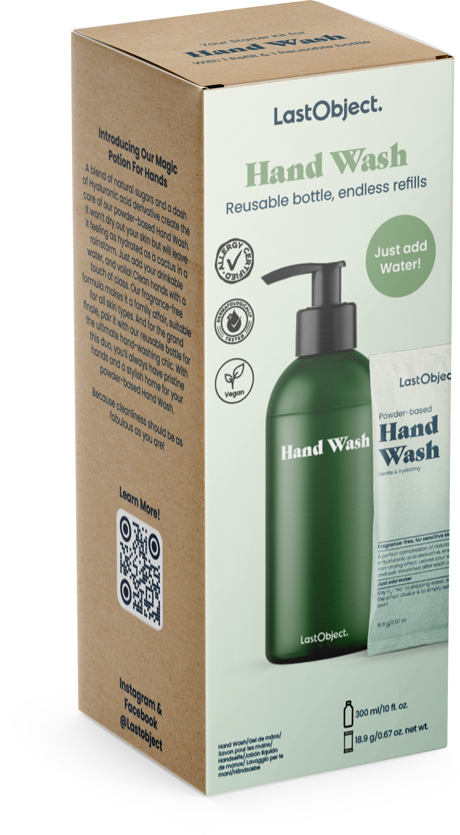 Mydło Hand Wash zostało opracowane we współpracy z ekspertką w dziedzinie urody Salli Villefrance i jest pełne składników odżywczych oraz nawilżających, takich jak kwas hialuronowy i trehaloza. Dzięki formie proszku unika się zbędnych opakowań i zmniejsza wagę podczas transportu. Po zużyciu mydła dozownik można po prostu uzupełnić za pomocą Refill.