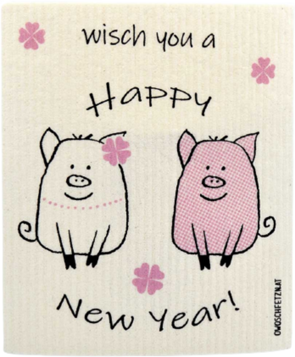 OWOSCHFETZN Ściereczka gąbczasta "Happy New Year", Pig Ben & Friend