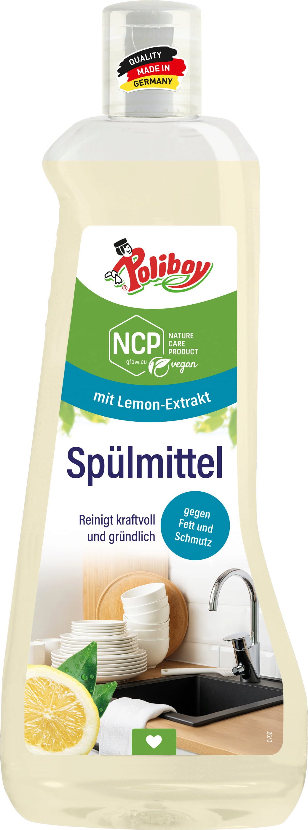 Oparty na składnikach aktywnych pochodzenia naturalnego, usuwa wszelkiego rodzaju zabrudzenia z talerzy, szklanek, sztućców i garnków oraz zapewnia higieniczną czystość i świeży cytrynowy zapach, który pochodzi z olejków eterycznych.